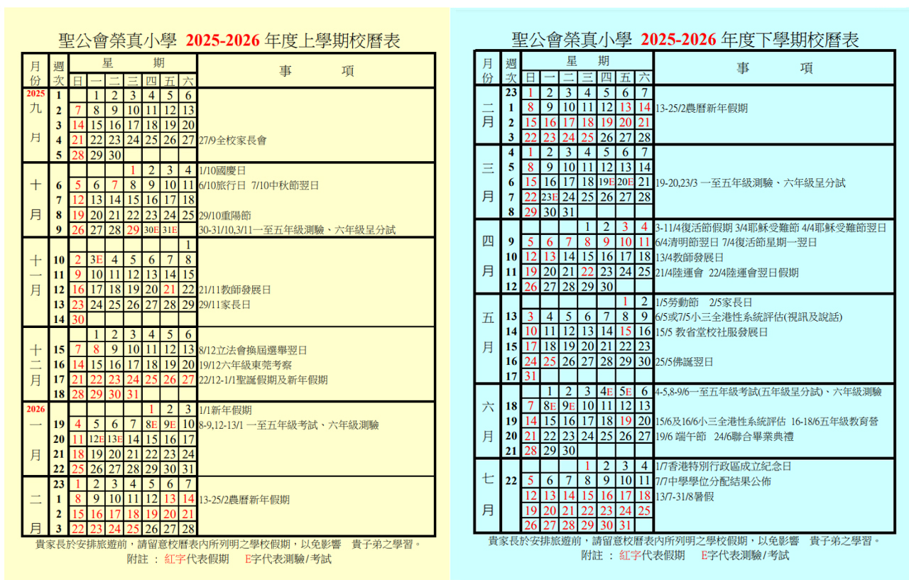校曆表