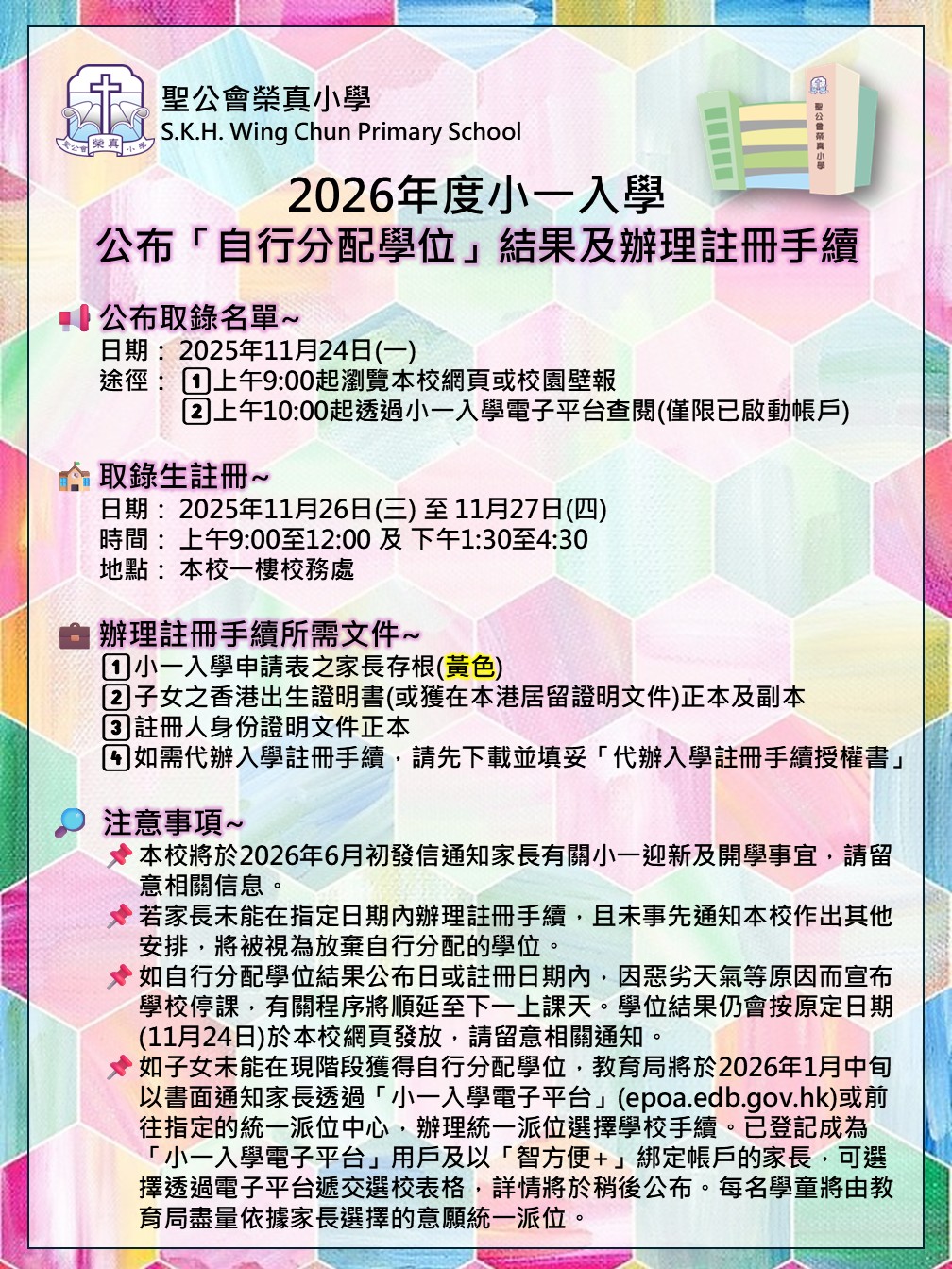 2026 公布自行分配學位結果及辦理註冊手續